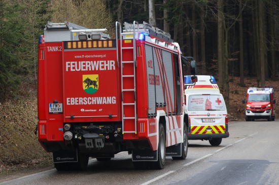 Der Unfall passierte Sonntagnachmittag auf der B143 Hausruckstraße, Hof, in Eberschwang. Ein PKW-Lenker verlor offenbar aus noch unbekannter Ursache die Kontrolle über sein Fahrzeug, kam von der Fahrbahn ab und krachte gegen die Böschung. Der PKW überschlug sich daraufhin. Der Lenker sowie sein Beifahrer wurden bei dem Unfall verletzt. Drei Feuerwehren wurden zur Personenrettung alarmiert. Die beiden Verletzten - der Lenker leicht verletzt, der Beifahrer schwer - wurden nach der Erstversorgung durch Rettungsdienst und Notarzt ins Krankenhaus Barmherzige Schwestern Ried eingeliefert. Die Einsatzkräfte der Feuerwehr führten in weiterer Folge die Aufräumarbeiten durch.