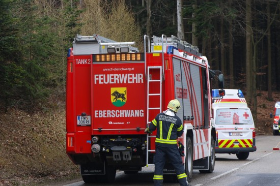 Eberschwang. Zwei Verletzte hat Sonntagnachmittag ein Verkehrsunfall auf der B143 Hausruckstraße im Gemeindegebiet von Eberschwang (Bezirk Ried im Innkreis) gefordert.