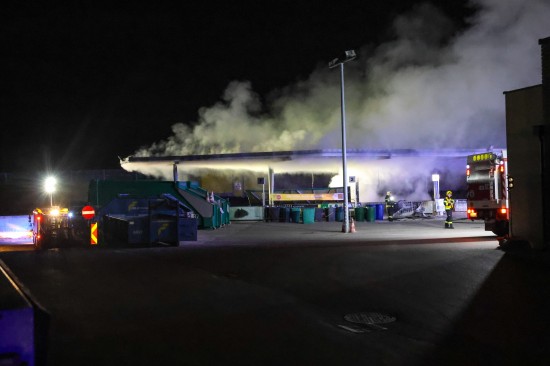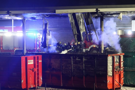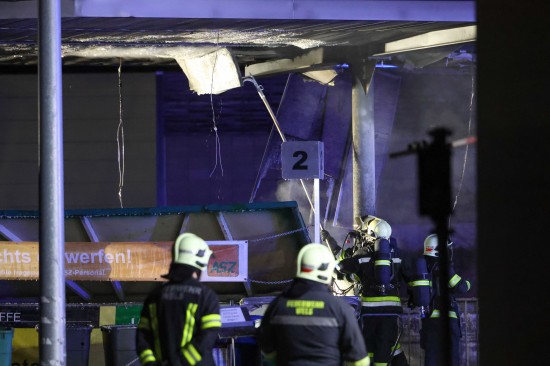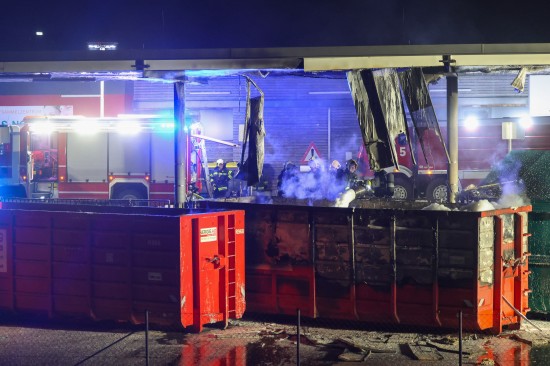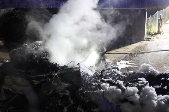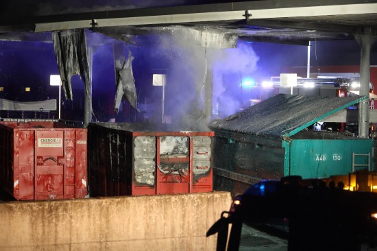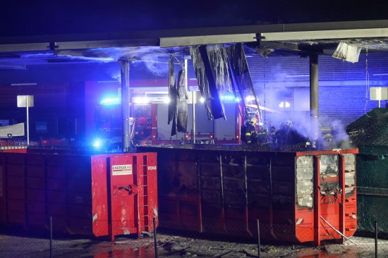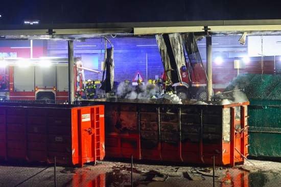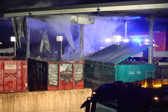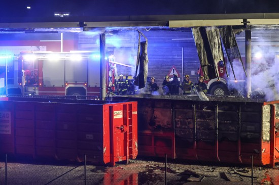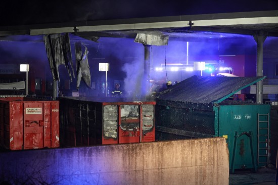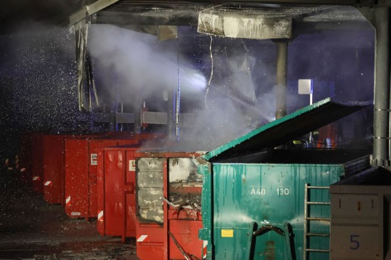 Beträchtlicher Schaden nach Containerbrand im Altstoffsammelzentrum in Wels-Neustadt