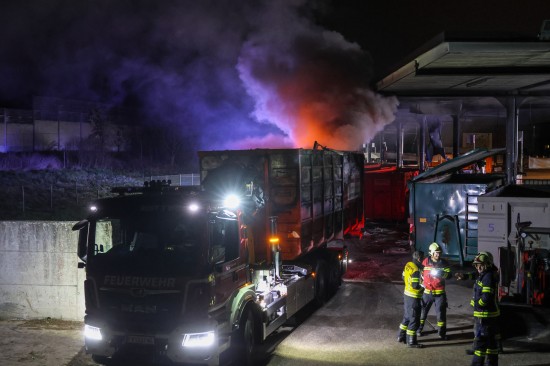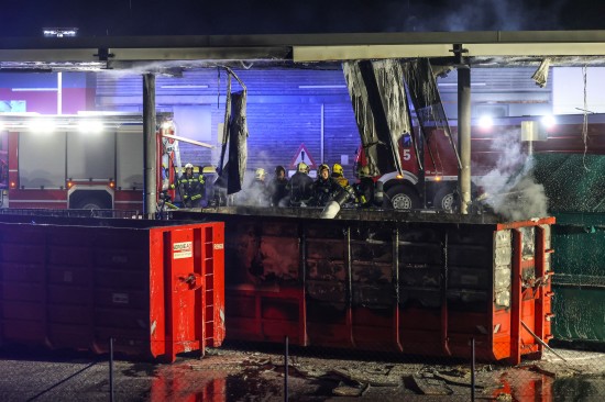 Im Altstoffsammelzentrum in Wels-Neustadt ist am späteren Mittwochabend ein Brand in einem Sperrmüllcontainer ausgebrochen. Das Feuer richtete beträchtlichen Schaden an.