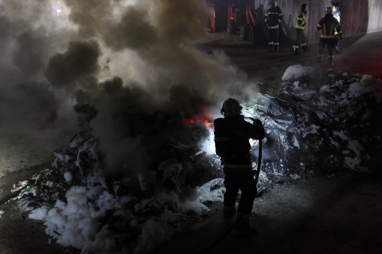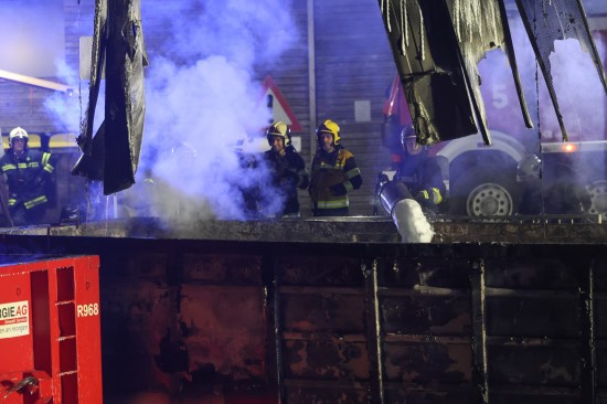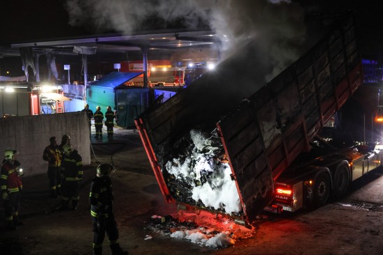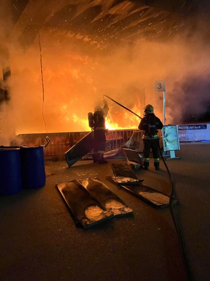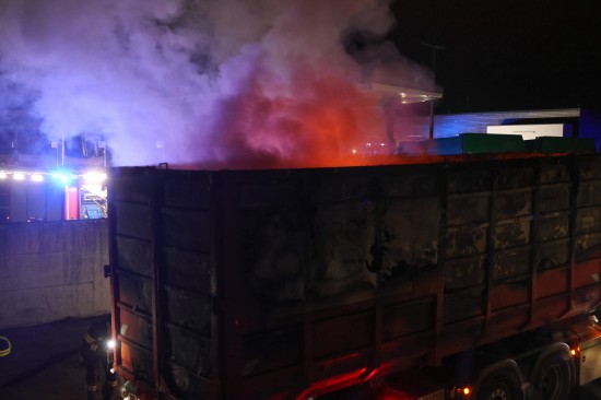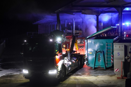In den frühen Morgenstunden dürfte sich der im Container gelagerte Abfall nochmals entzündet haben, sodass Einsatzkräfte zweier Feuerwehren nochmals mit Löschmaßnahmen befasst waren, der Container wurde in der Folge dann mit einem Lastfahrzeug aus der Entsorgungsbucht gezogen und im Freigelände entleert. Dort konnte der Abfall dann auseinandergeräumt, nochmals abgelöscht und unter einem Schaumteppich belassen werden.