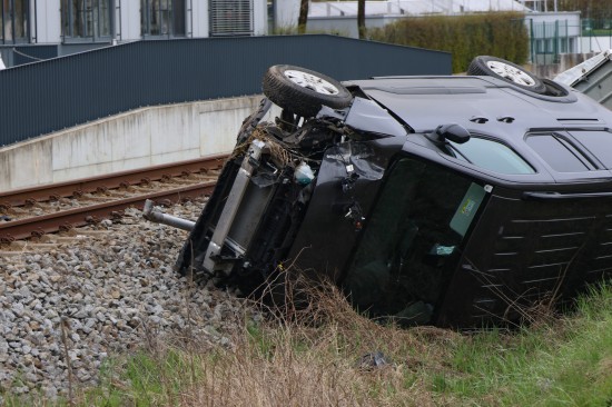 Verkehrsunfall in Steinhaus: Auto auf Pyhrnpass Straße gegen Bahndamm der Almtalbahn überschlagen