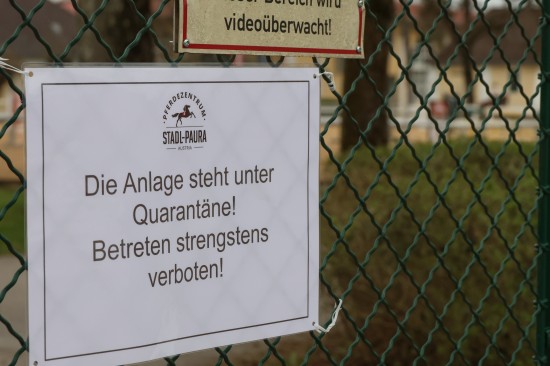 In einem Pferdezentrum in Stadl-Paura ist es offenbar zu einem Ausbruch der Pferdeinfluenza gekommen, etwa 40 Pferde sind laut Medienberichten erkrankt, die Anlage wurde vorsorglich unter Quarantäne gestellt.