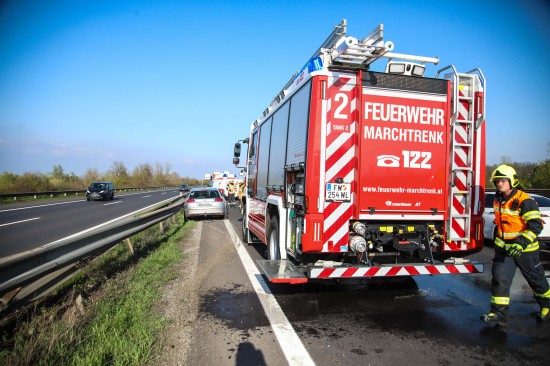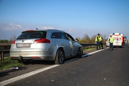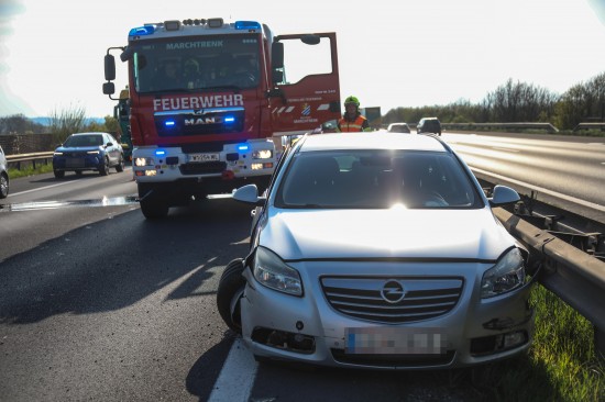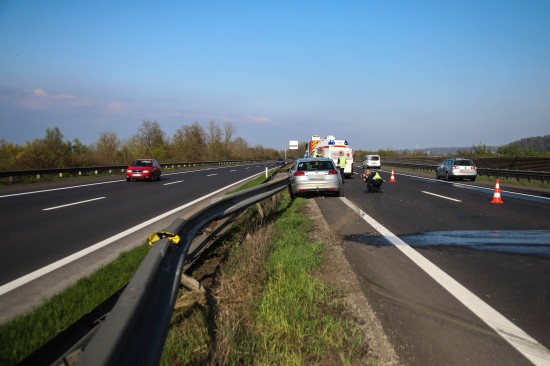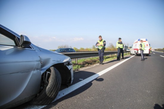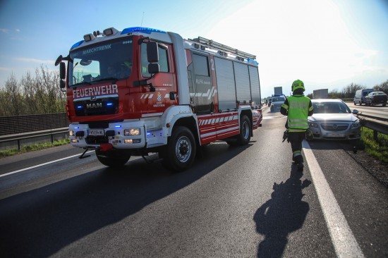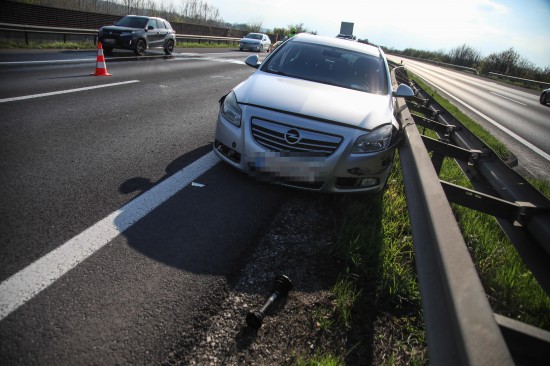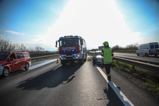 Personenrettung: Auto auf Welser Autobahn bei Pucking gegen Mittelleitschiene gekracht