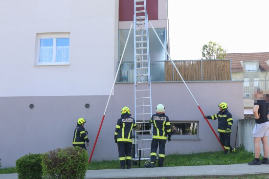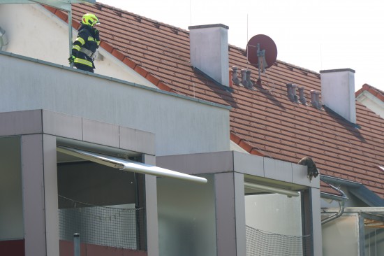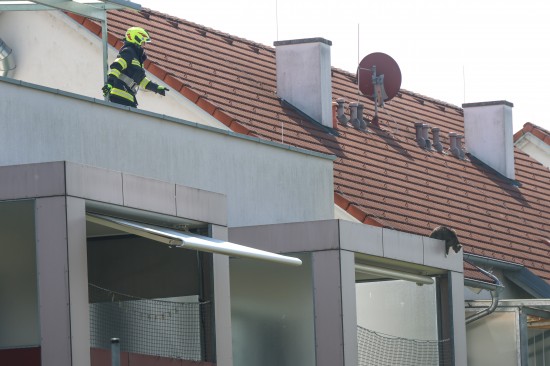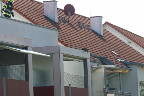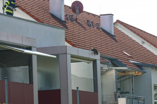 Eine Katze befand sich bei einer Wohnanlage auf einer fremden Terrasse, woraufhin die Feuerwehr zur Unterstützung angefordert wurde. Mittels Leiter machten sich die Einsatzkräfte auf zur Katze, welche dann aber auf ein etwas tiefer liegendes Balkondach flüchtete und von dort dann den Sprung in einen Garten wagte. Die Rettungsaktion konnte damit erfolgreich abgeschlossen werden.