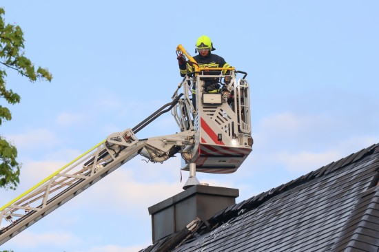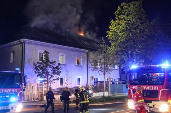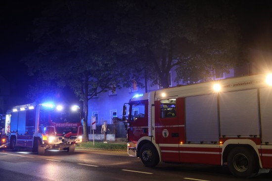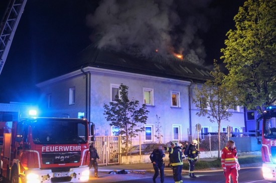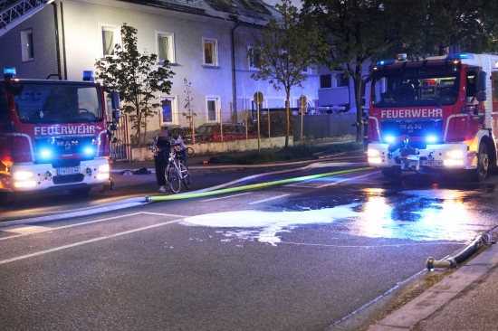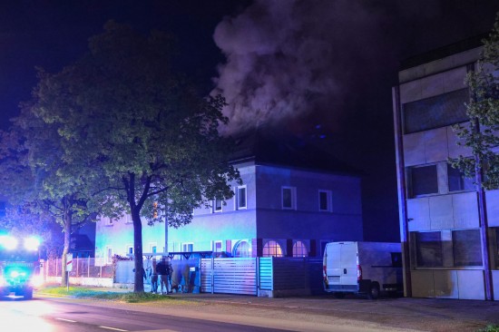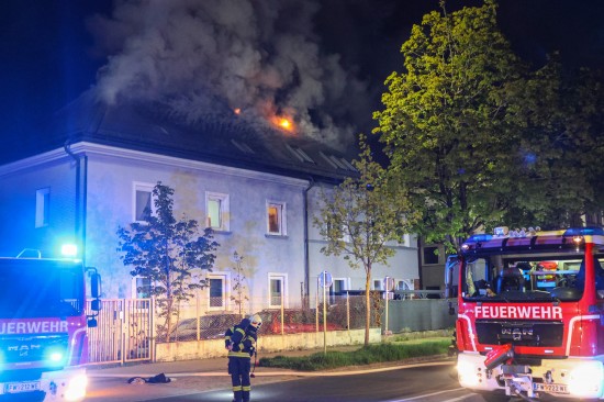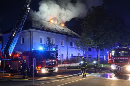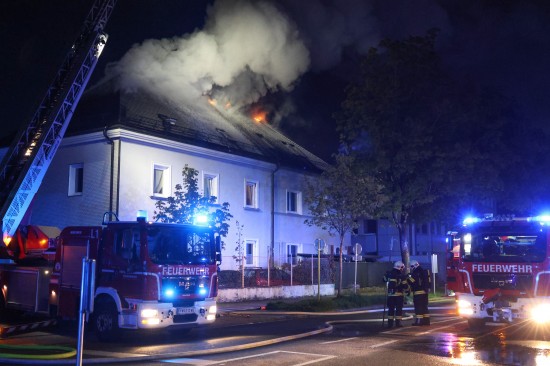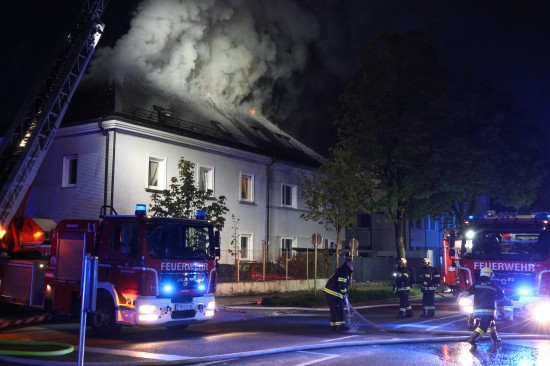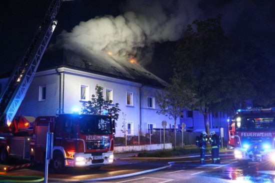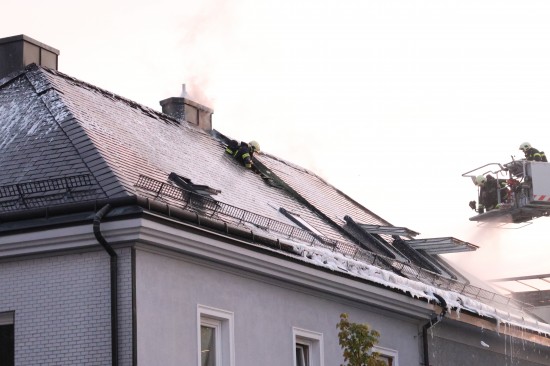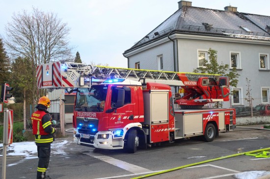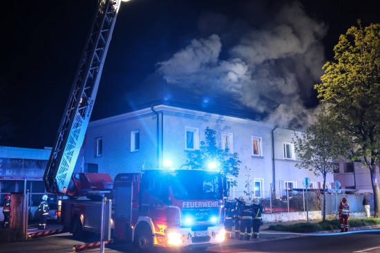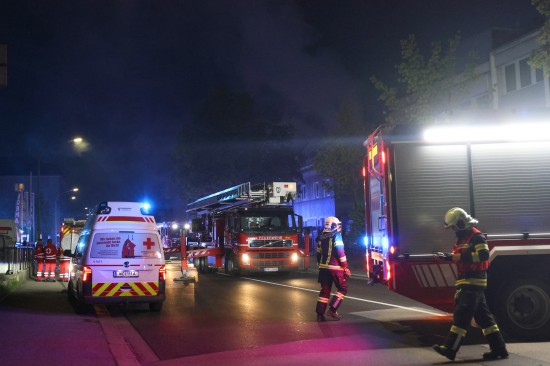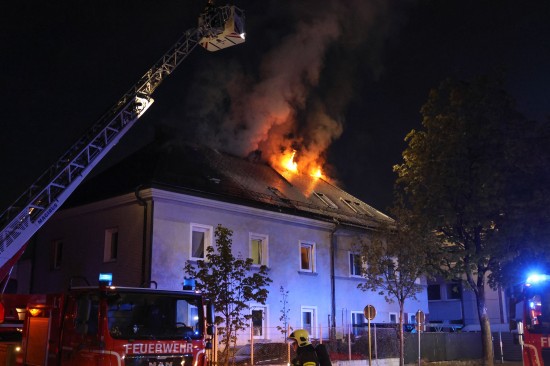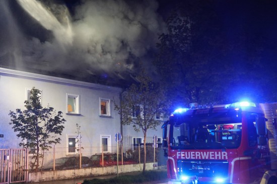 Fünf Feuerwehren bei Dachstuhlbrand bei einem Doppelhaus in Wels-Innenstadt im Einsatz