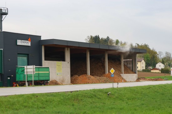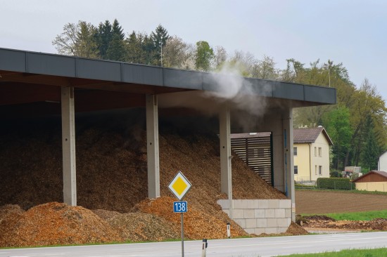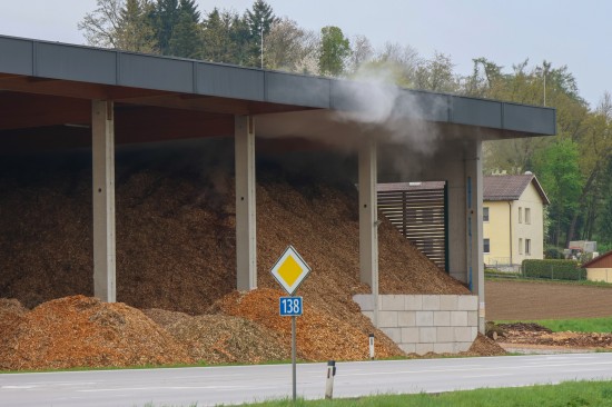 Brandverdacht: Dampfentwicklung bei einem Biomasseheizwerk in Thalheim bei Wels