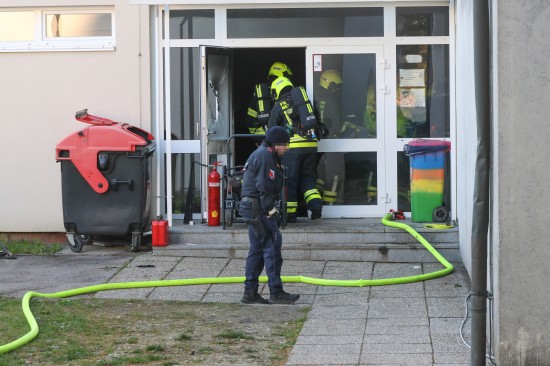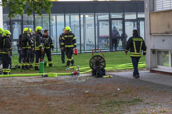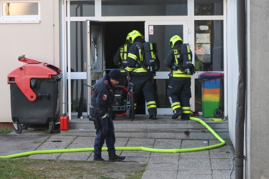 Ansfelden. Vier Feuerwehren standen Donnerstagfrüh nach einer vermutlichen Brandstiftung in einem Schulgebäude in Ansfelden (Bezirk Linz-Land) im Einsatz.