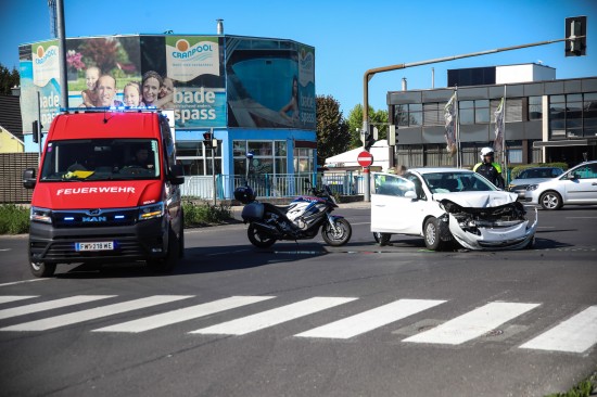 Ein schwerer Kreuzungscrash hat sich Sonntagvormittag in Wels-Pernau ereignet. Zwei Personen wurden dabei leicht verletzt.