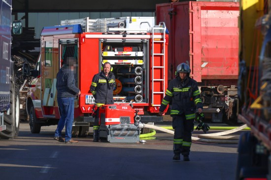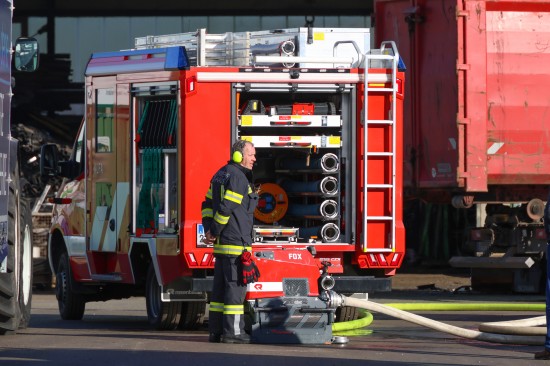 In Edt bei Lambach (Bezirk Wels-Land) standen die Einsatzkräfte zweier Feuerwehren, Rettung und Polizei Montagfrüh bei einem Brand auf dem Betriebsgelände eines Schrotthändlers im Einsatz.
