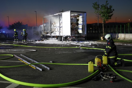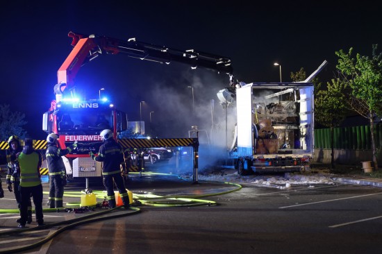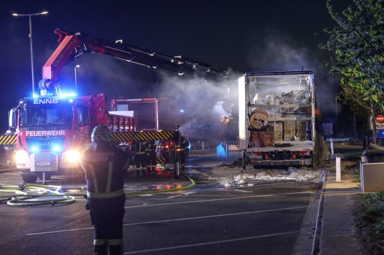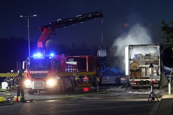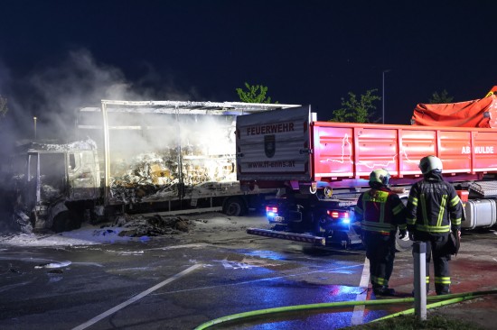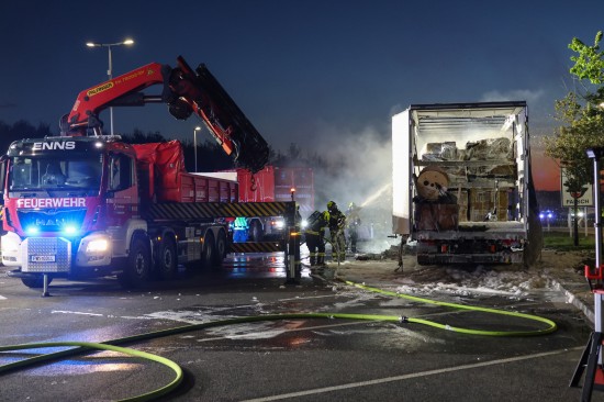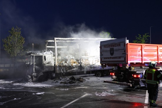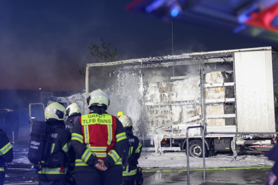 Ein LKW-Brand auf einem Autobahnrastplatz in Enns (Bezirk Linz-Land) hat am Mittwochabend zu einem größeren und längeren Einsatz der Feuerwehren geführt.