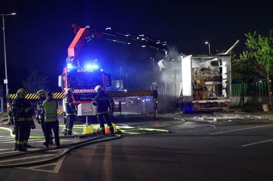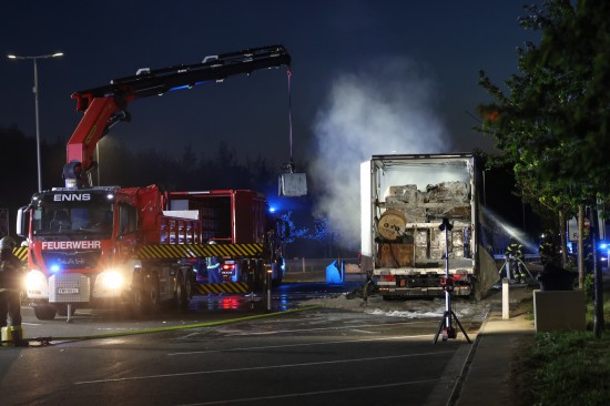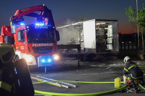 Die Feuerwehr wurde am Abend mit dem Einsatzbegriff "Brand LKW im Freien - Alarmstufe 2" auf die A1 Westautobahn beziehungsweise den Rastplatz Enns-Süd im Gemeindegebiet von Enns alarmiert. Ein dort geparkter LKW stand in Vollbrand. Die Einsatzkräfte der zwei alarmierten Wehren konnten den Brand rasch eindämmen. Das Ladegut wurde dann mittels Kran der Feuerwehr entladen und abgelöscht. Der LKW-Lenker wurde vor Ort vom Rettungsdienst versorgt beziehungsweise betreut.