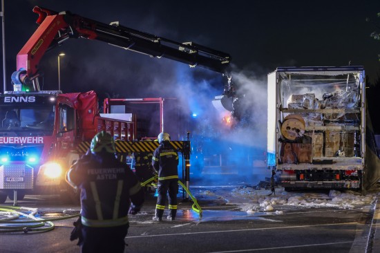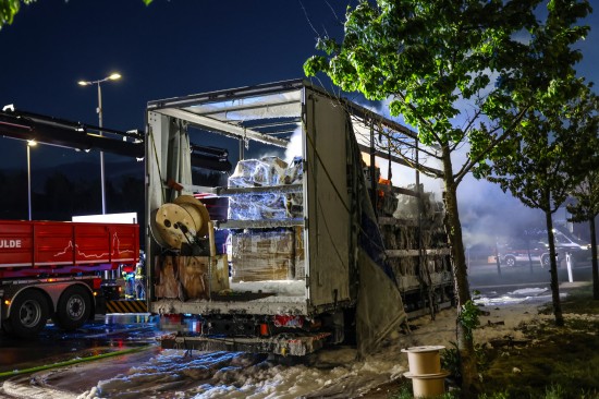 Größerer Löscheinsatz: LKW auf Rastplatz entlang der Westautobahn bei Enns in Vollbrand