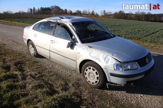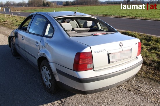 Die Feuerwehr wurde Sonntagmittag zu einem Verkehrsunfall nach Schlatt (Bezirk Vöcklabruck) gerufen. Ein PKW hatte sich überschlagen und blieb auf der Seite liegen.