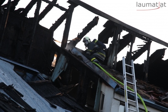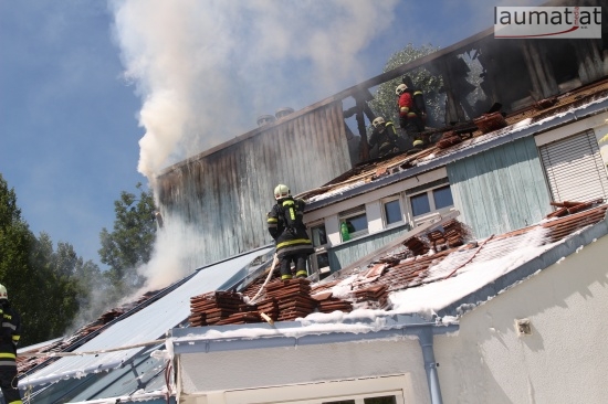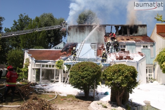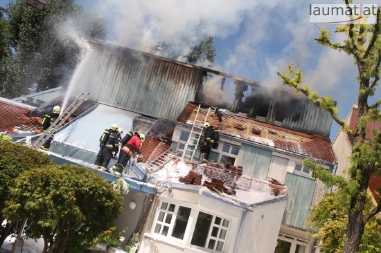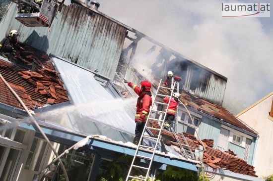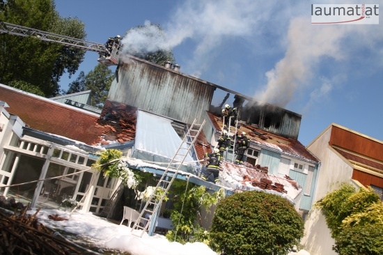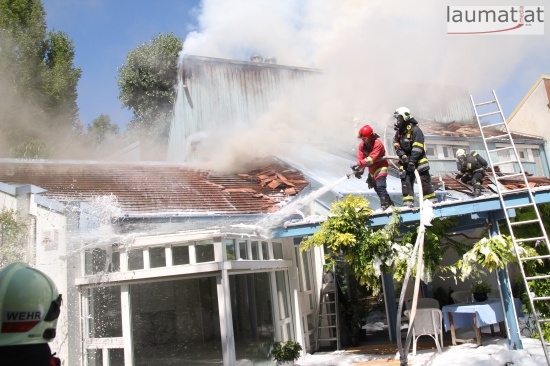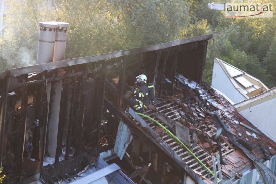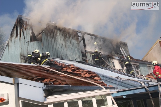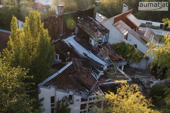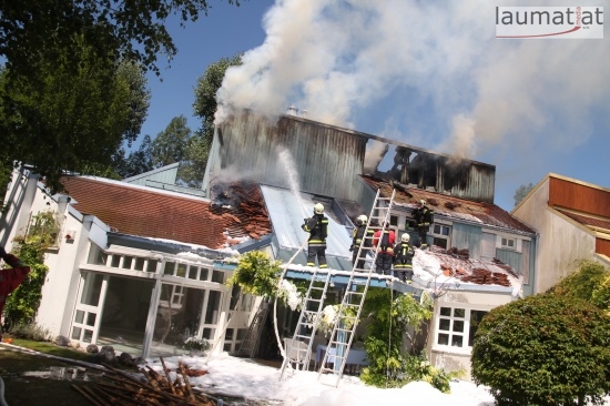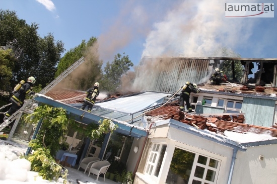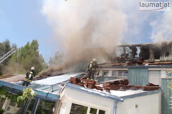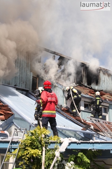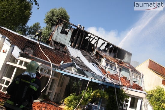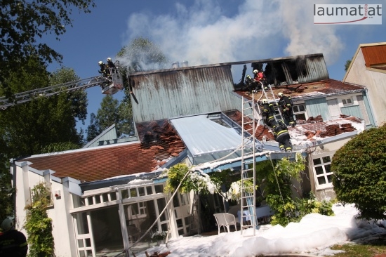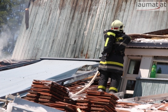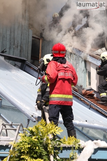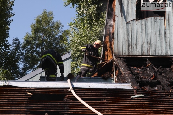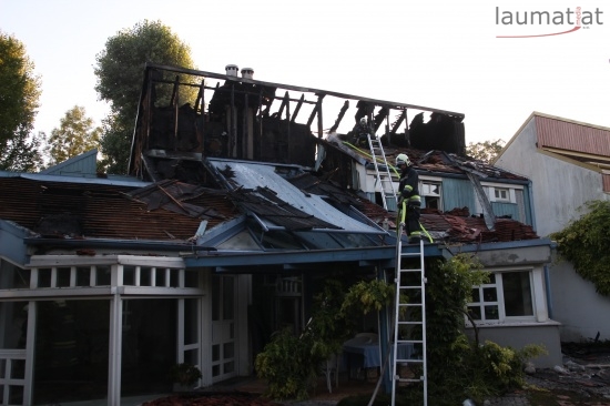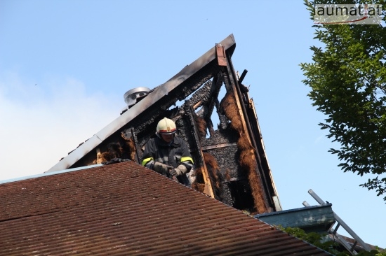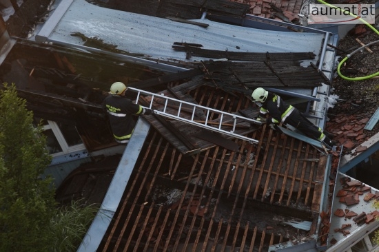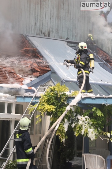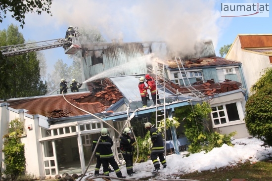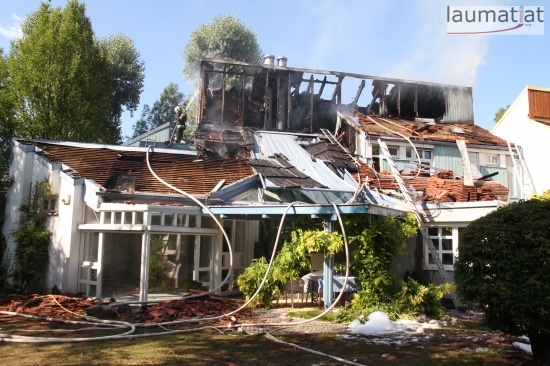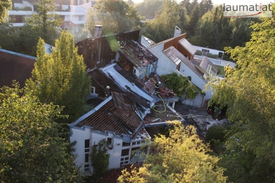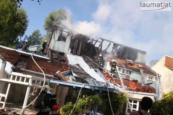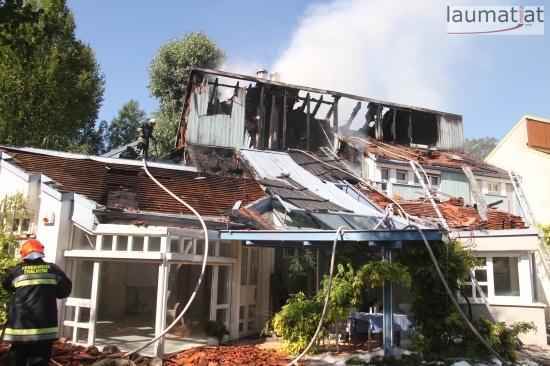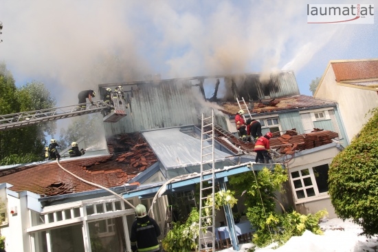 Im Dachbereich dürfte das Feuer entstanden sein. Arbeiter, die mit Arbeiten am Haus beschäftigt waren, alarmierten sofort die Feuerwehr. Beim Eintreffen der ersten Kräfte war bereits eine größere Rauchsäule wahrzunehmen. Sofort wurde ein umfangreicher Löschangriff gestartet. Im Dachboden sowie unter den zahlreichen Holzverschalungen breitete sich das Feuer aus. Trotz des sofortigen Einsatzes mehrerer Feuerwehren wurde das Haus schwer beschädigt, Teile des Daches sind eingestürzt. Am Mittwochfrüh wurden durch die Feuerwehr erneut einige Glutnester abgelöscht.