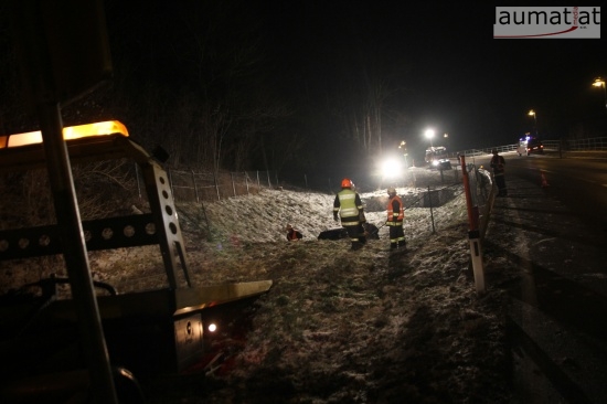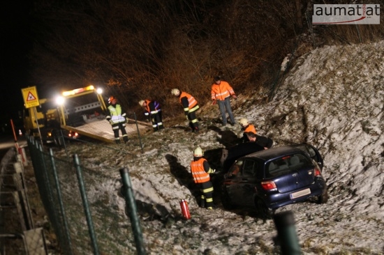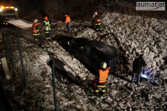 Fischlham. Mit seinem Fahrzeug ist am Mittwochabend ein Lenker auf der Sattledter Straße in Fischlham ins Schleudern gekommen und in einem Hochwasserüberlaufbecken gelandet.