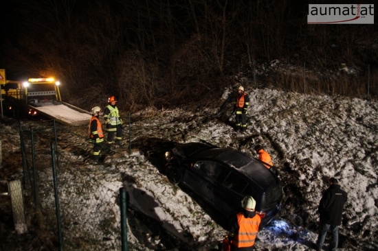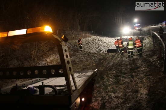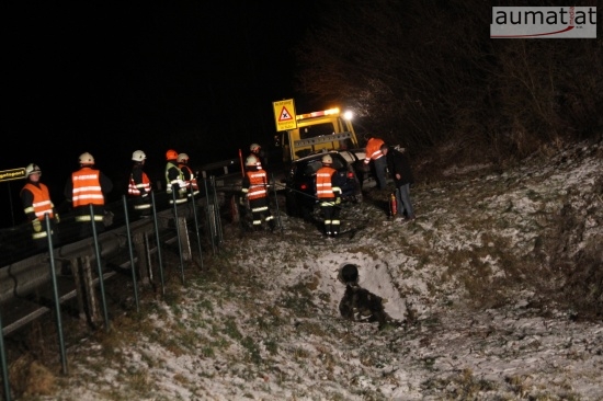 Die Feuerwehr führte gemeinsam mit einem Abschleppunternehmen die Fahrzeugbergung aus dem, zum Glück trockenen, Hochwasserüberlaufbecken durch, leuchtete die Unfallstelle aus und regelte den Verkehr.